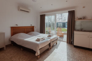Naast de wellness zijn er diverse mogelijkheden om de eigen ruimte te ervaren. Van overzichtelijke studio, tot ruim chalet. Of uiteraard in eigen tent, camper of caravan. Aan de rand gelegen, of in een laantje, op 't veld of in 't rond, comfortabel bij de uitgang richting dorp en strand of temidden van jonge aanplant met volop natuurlijke ontwikkeling, of onder een eigen favoriete wollen dekentje in een eenvoudige trekkershut - helemaal back to basic.